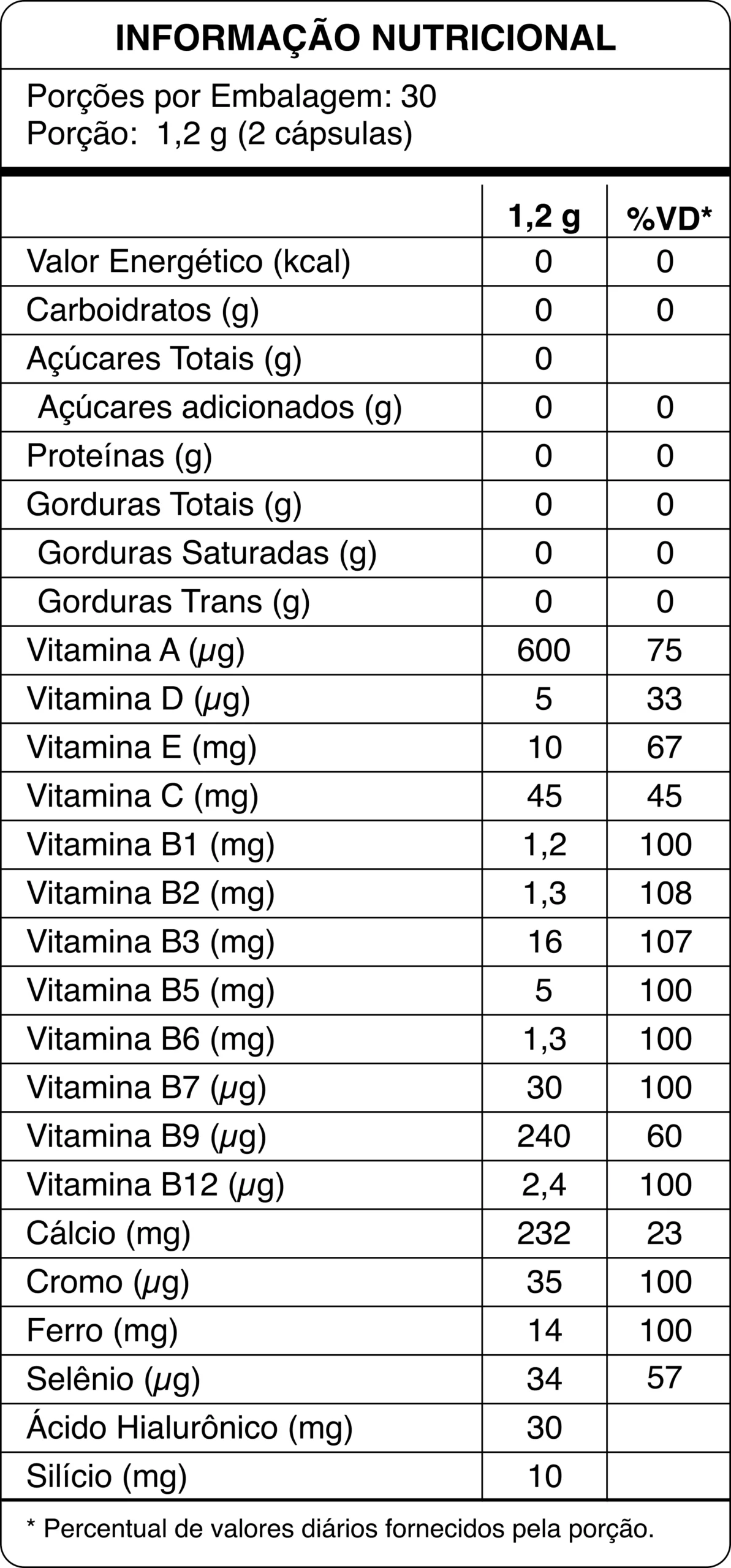 Com ativos como biotina, silício orgânico e ácido hialurônico, o suplemento contribui para fios mais resistentes, hidratados e com aparência mais uniforme.